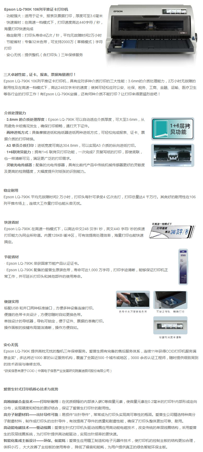 • 商品名称:爱普生(EPSON)LQ-790K 针式打印机(106列平推式 支持A3幅面 3.6mm介质处理能力)
